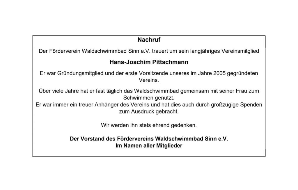 Über viele Jahre hat der Tauchclub, der im Übrigen auch Vereinsmitglied im Förderverein gewesen ist, das Waldschwimmbad tatkräftig unterstützt: Sei es im Rahmen der Ferienpassaktion, sei es als Helfer unter Wasser, um den Grund des Schwimmbeckens vor der Saisoneröffnung und auch während der Saison von den Verschmutzungen zu reinigen, sei es aber auch als zahlende Trainingsgruppe, die in der Sommersaison Schnorchel- und Techniktraining durchführte. Nebenbei unterstützen einige Taucher ehrenamtlich das Bad auch bei der Badeaufsicht. Diese jahrelange, intensive Zusammenarbeit der beiden Vereine endet nun, nachdem der Tauchclub aus personellen Gründen seine Auflösung beschlossen hat. Das wird aber einige ehemalige Vereinsmitglieder nicht davon abhalten, dem Förderverein und der gGmbH Waldschwimmbad Sinn weiterhin tatkräftig zur Seite zu stehen, wenn auch in anderer Organisationsform.