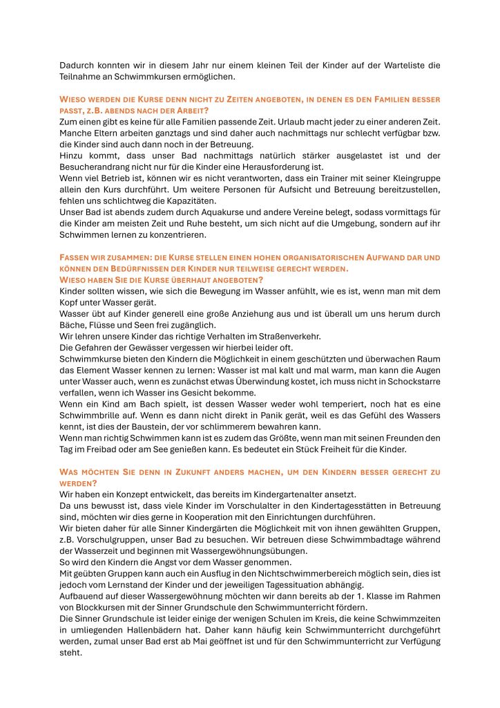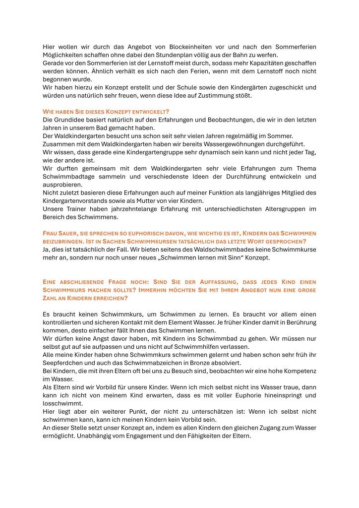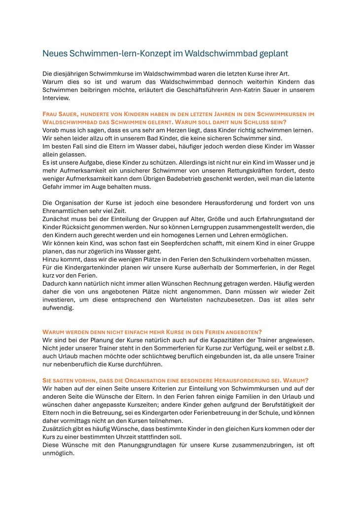 Hier das Interview mit der ehrenamtlichen Geschäftsführerin Ann-Katrin Sauer zum neuen Konzept für die Kinderschwimmkurse: